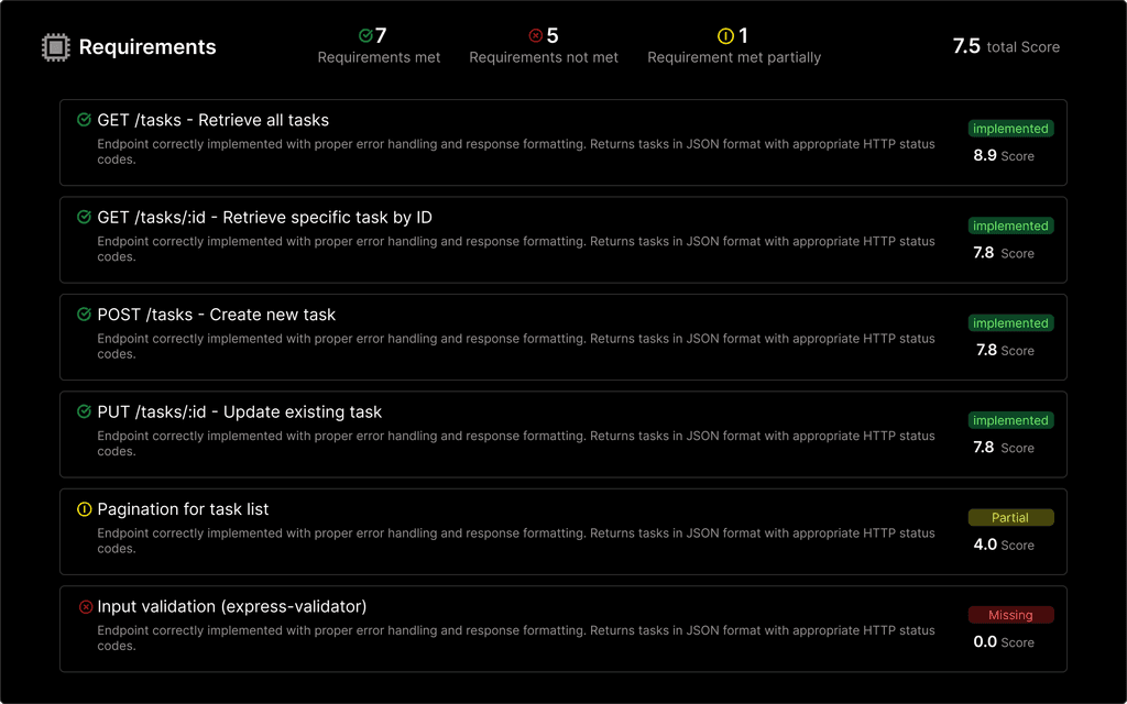 See exactly which parts of the candidate’s code meet your standards.